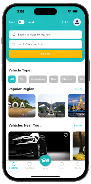 Easily select your desired pick-up location and browse available vehicles near you.